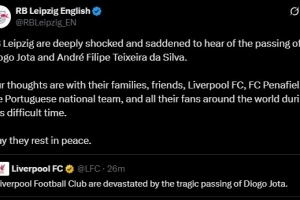 莱比锡官推写道:“RB莱比锡对迪奥戈-若塔和安德烈-菲利佩-特谢拉-达-席尔瓦的离世深感震惊与悲痛。值此艰难时刻,我们的心与他们的家人、朋友、利物浦足球俱乐部、佩纳菲耶尔足球俱乐部、葡萄牙国家队以及全球所有球迷同在。愿逝者安息。”